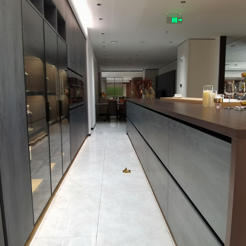కొత్త స్టైల్ ఫ్యాషనబుల్ ఇండస్ట్రియల్ లామినేటెడ్ కిచెన్ క్యాబినెట్, రాక్ వెదర్ వంటి రంగు పాత ట్రీట్మెంట్, టచ్ ఫీలింగ్ స్మూత్ మరియు క్వాలిటీ, అల్యూమినియం ఫ్రేమ్తో మ్యాచింగ్ గ్లాస్ డోర్ ప్యానెల్, కిచెన్ డెకర్ ఎఫెక్ట్ను అధిక సెన్స్ చేస్తుంది. మెటీరియల్ జలనిరోధిత సులభంగా శుభ్రంగా ఉంటుంది మరియు శైలి సులభం కాదు.