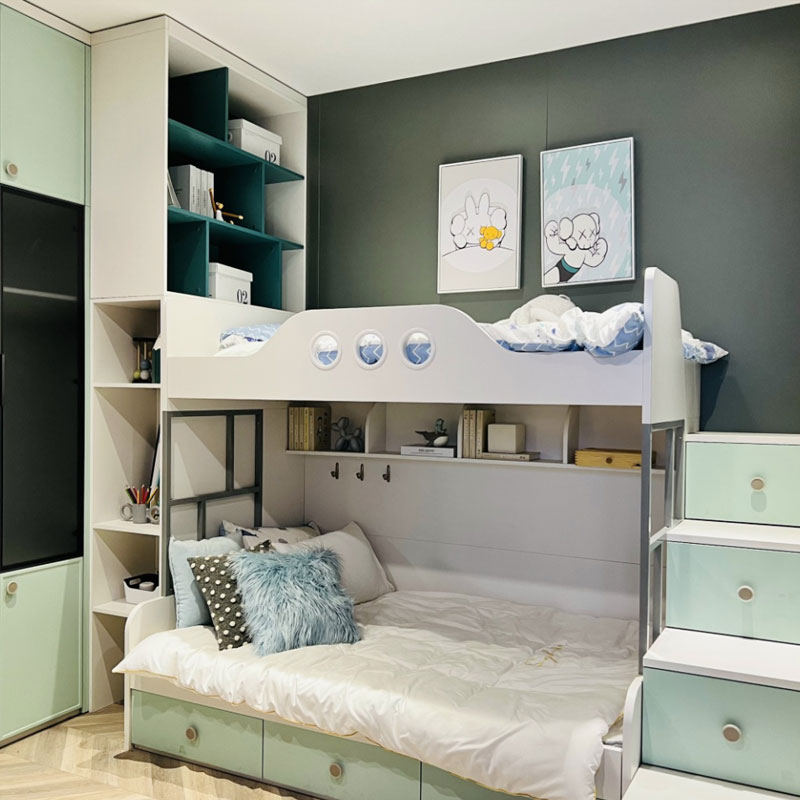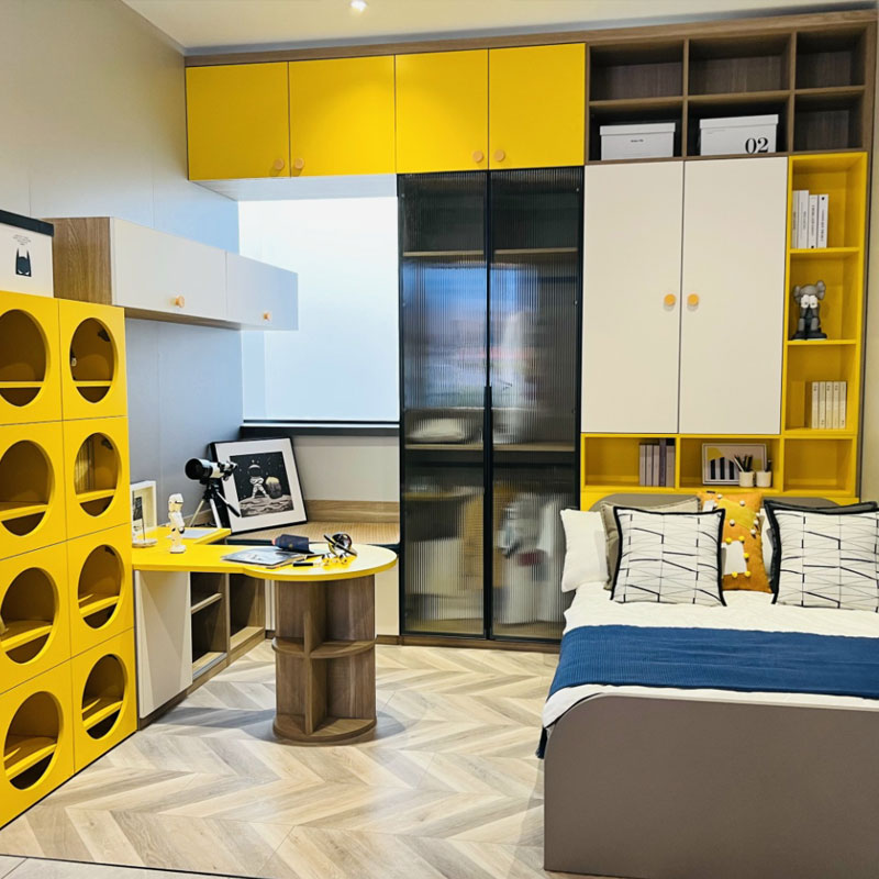 మా నుండి కిడ్స్ బెడ్రూమ్ వార్డ్రోబ్లను కొనుగోలు చేయడానికి స్వాగతం. సినోహ్ చైనాలో టాప్ కిడ్స్ బెడ్రూమ్ వార్డ్రోబ్లు మరియు ఫర్నిచర్ తయారీ. మేము కిచెన్ క్యాబినెట్లు, బెడ్రూమ్ వార్డ్రోబ్లు, వాక్ ఇన్ రూమ్ క్లోసెట్ మొదలైనవాటిని మొత్తం స్పేస్ అనుకూలీకరించిన క్యాబినెట్లను ఉత్పత్తి చేస్తాము. ప్రస్తుతం మీ క్యాబినెట్లను డిజైన్ చేయడానికి, ఉత్పత్తి చేయడానికి మరియు రవాణా చేయడానికి సినోహ్ను సంప్రదించండి. పిల్లల స్వభావానికి అనుగుణంగా మరియు గది స్థలాన్ని పూర్తిగా ఉపయోగించుకునేలా ప్రకాశవంతమైన మరియు చురుకైన రంగులు మరియు స్టైల్స్తో పిల్లల బెడ్రూమ్ సినోవాను రూపొందించబడింది.