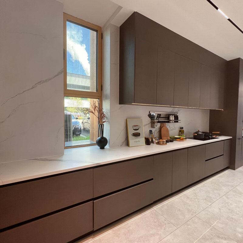 లామినేట్ కిచెన్ క్యాబినెట్స్ పరిమాణం: దిగువ D580 x H900mm x Wtbc, ఎగువ D420 x H800mm x Wtbc