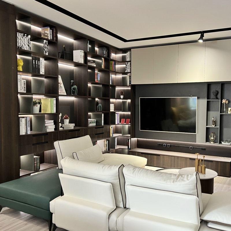 బిల్డర్, కాంట్రాక్టర్, డెవలపర్ మరియు యజమానులకు అనుకూలీకరించిన లివింగ్ రూమ్ క్యాబినెట్లను సరఫరా చేయడంలో సినోహ్ గర్వంగా ప్రొఫెషనల్. క్లయింట్ల అవసరాలు మరియు బడ్జెట్కు అనుగుణంగా మాలెమైన్, పివిసి, పెంపుడు, లక్క మరియు గాజు మొదలైన విభిన్న పదార్థాలను ఉపయోగించి సినోహ్ లివింగ్ రూమ్ క్యాబినెట్లను ఉత్పత్తి చేస్తుంది. మేము సున్నితమైన క్యాబినెట్లను పూర్తి చేయడానికి మరియు మా వినియోగదారులకు సౌకర్యవంతమైన ఇంటిని తీసుకురావడానికి అర్హత కలిగిన ముడి పదార్థాలను ఎంచుకుంటాము. లివింగ్ రూమ్ కోసం ఈ సమకాలీన శైలి క్యాబినెట్లు ప్రధానంగా కలప మెలెమైన్ మరియు గ్లాస్ మెటీరియల్ను ఉపయోగిస్తాయి.