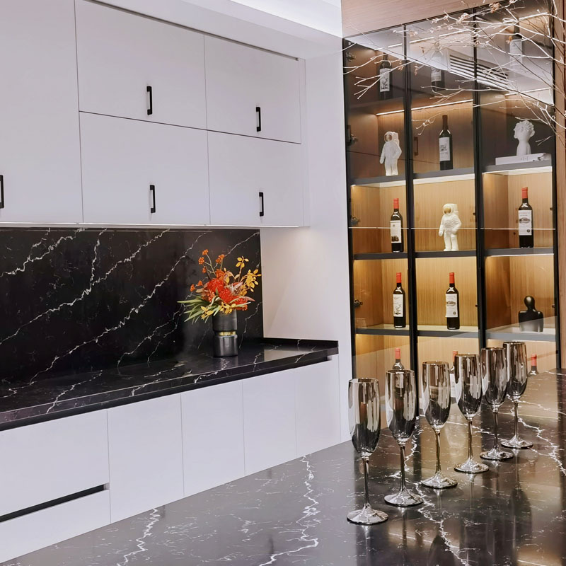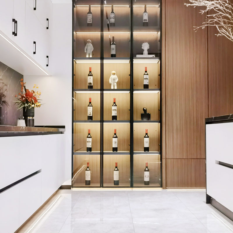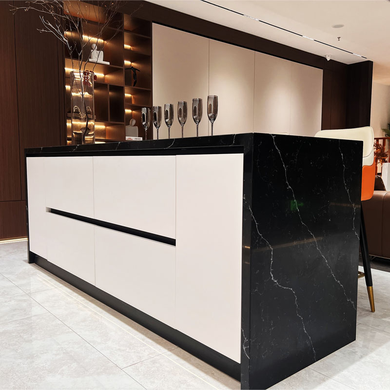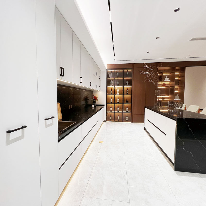A: కిచెన్ క్యాబినెట్ల కోసం హ్యాండిల్ లేకుండా డోర్ ప్యానెల్ చాలా ఆధునికమైనది మరియు సులభమైన నిర్వహణ. లేదా స్టెయిన్లెస్ స్టీల్ హ్యాండిల్ని ఎంచుకోండి వంటగదికి చాలా అనుకూలంగా ఉంటుంది.